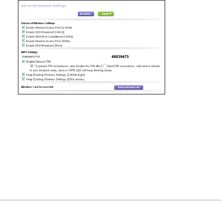 extender allows WiFi connections in the 2.4 GHz band. Clearing this check box