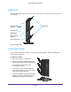 AC1900 WiFi Range Extender Rear Panel The following figure shows the ports, buttons, antennas, and connector on the rear panel of the extender. Antennas Ethernet LAN ports (5) Reset button WPS button Power On/Off button Power connector Figure 2. Rear panel Attach the Stand If you prefer to place the extender in the upright (vertical) position, attach the stand that comes with the extender. To attach the stand: 1. Place the stand on a flat surface. 2.