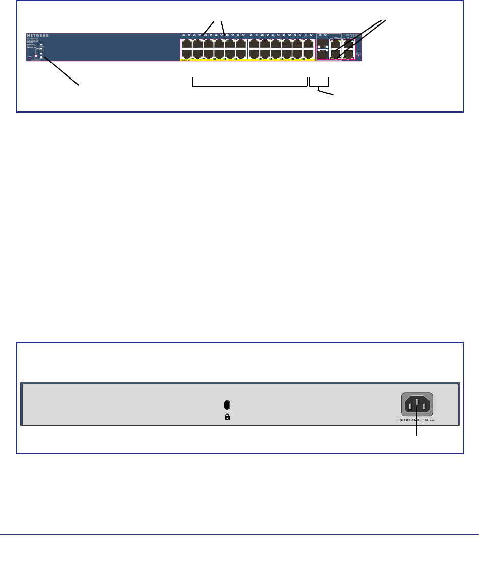 switching ports, and two 1000 Mbps SFP Gigabit Ethernet switching ports. Each RJ-45 port is