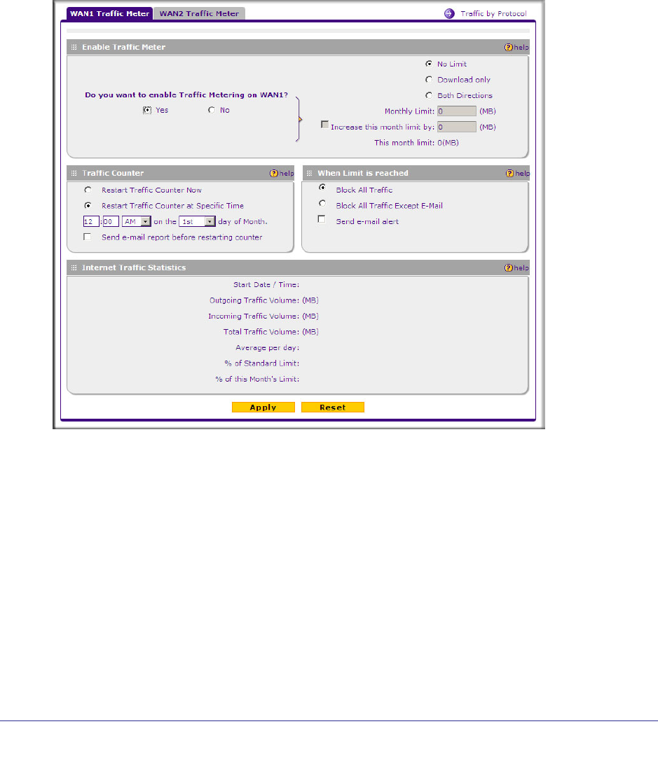Traffic Metering on WAN1? The traffic meter will record the volume of Internet traffic