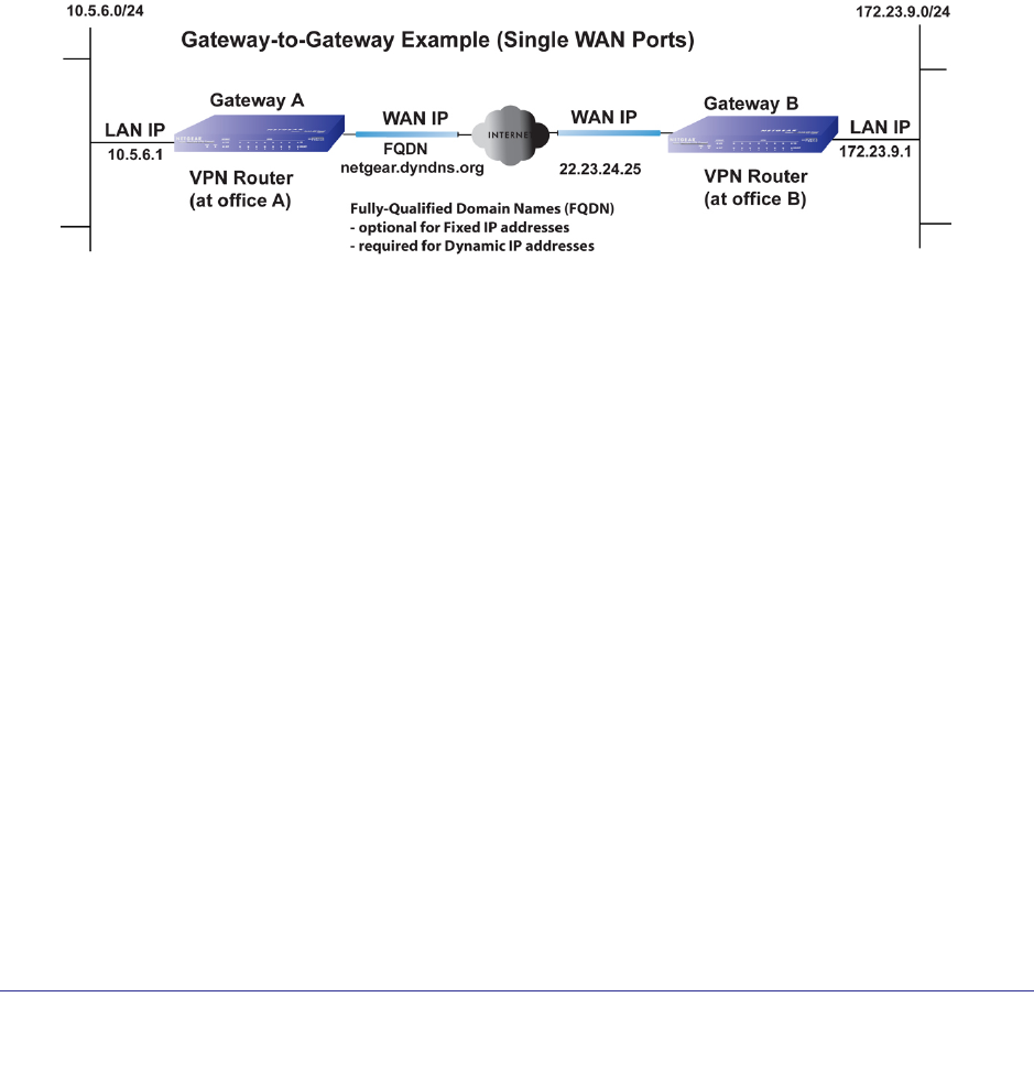 Figure B-13 Gateway-to-Gateway with Single WAN Ports