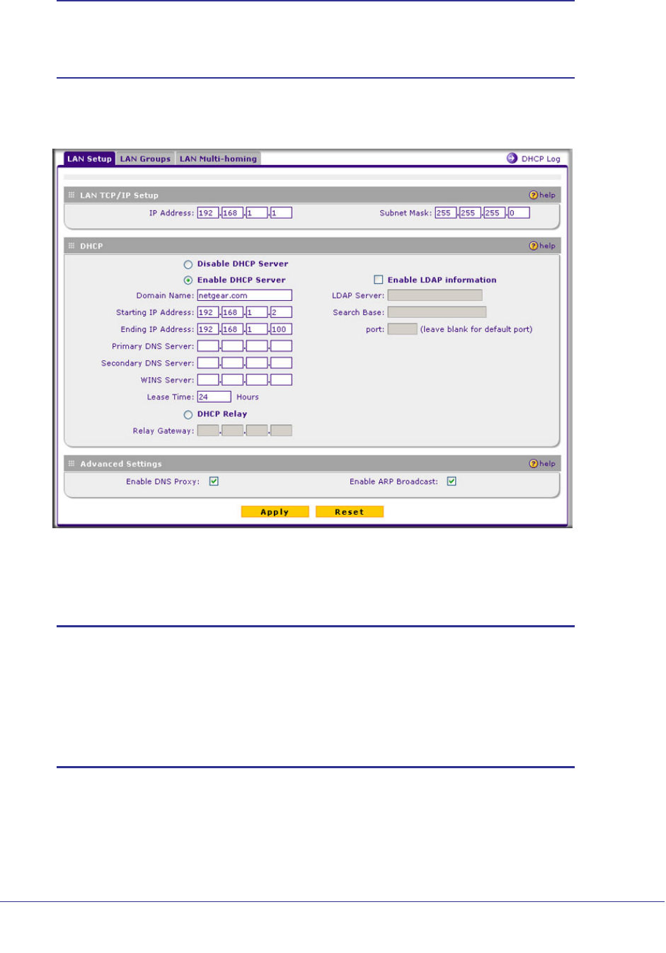 2. In the LAN TCP/IP Setup section, configure the following settings:
