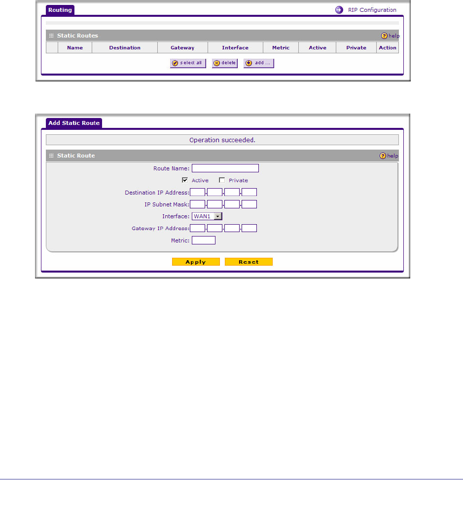 2. Click Add. The Add Static Route screen is displayed.