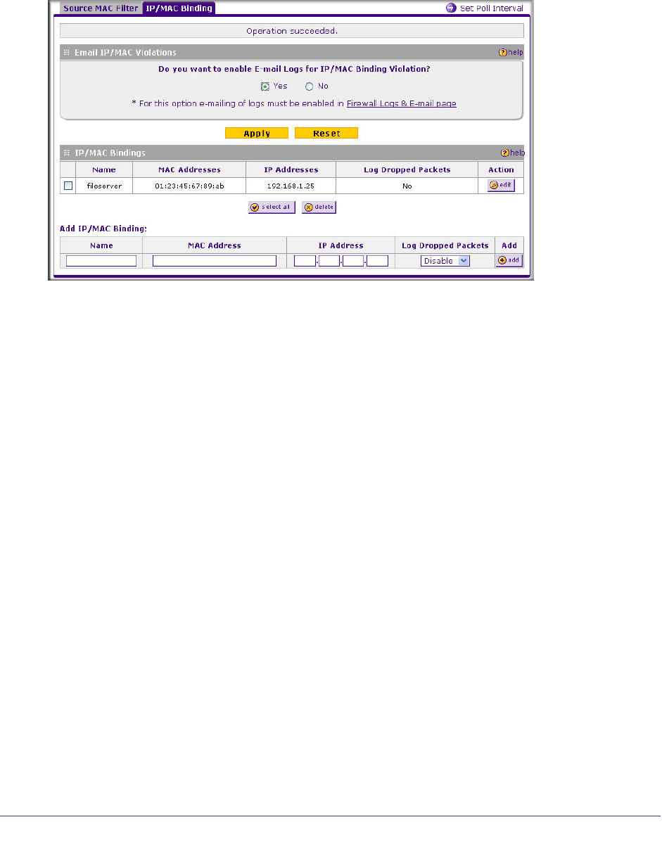 violations and to set the poll interval, click the Set Poll Interval link at the top of the IP/MAC