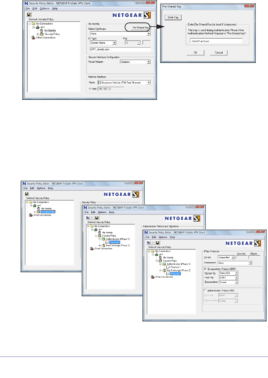 • Click Pre-Shared Key to enter the key you provided in the VPN Wizard; in this