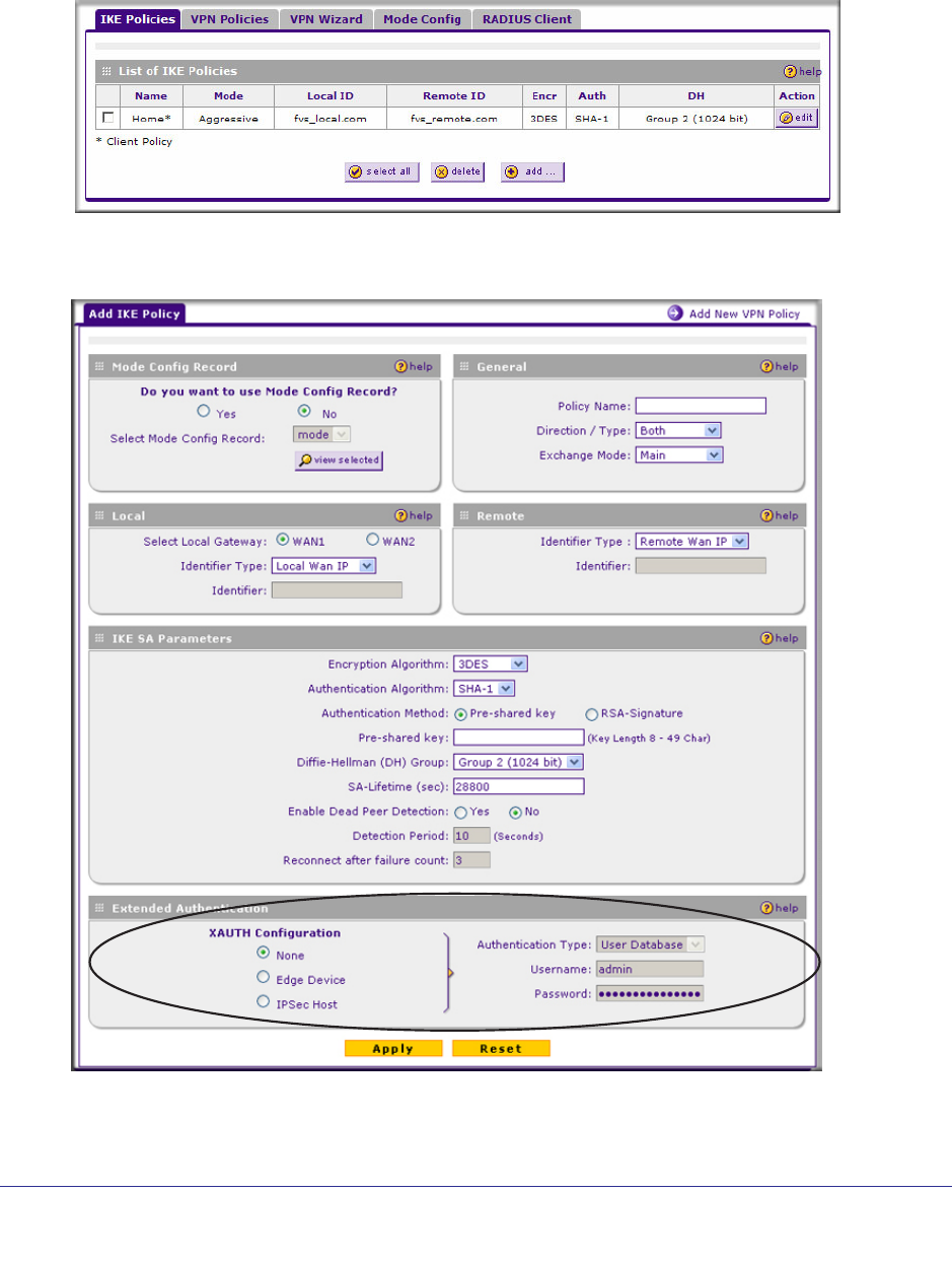 be modified or you can create a new IKE Policy incorporating XAUTH by clicking Add.