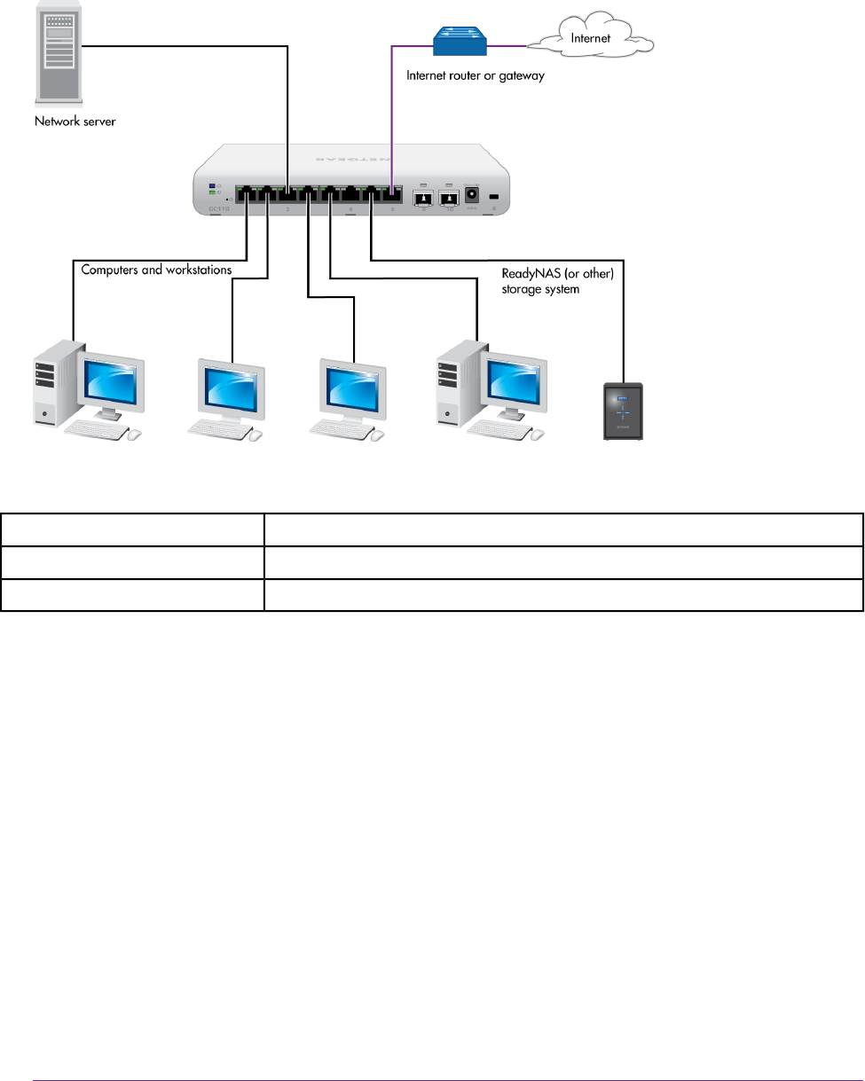 Internet modem. In such a setup, you must connect one port on the switch to a LAN port on the router.