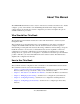 About This Manual The NETGEAR® GS108T Smart Switch Software Administration Manual describes how to install, configure, operate, and troubleshoot the GS108T Gigabit Smart Switch using its included software. This book describes the software configuration procedures and explains the options available within those procedures. Who Should Use This Book The information in this manual is intended for readers with intermediate to advanced system management skills.