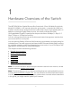 Contents Chapter 1 Hardware Overview of the Switch Related documentation.......................................................................8 Switch package contents.....................................................................8 Front panel............................................................................................9 Status LEDs..........................................................................................10 Back panel.....................................................
