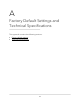 - A. Factory Default Settings and Technical Specifications