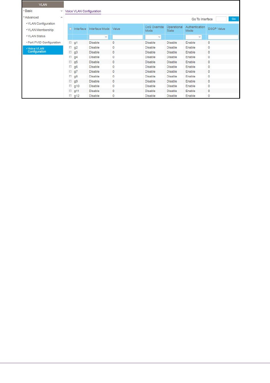 8. From the Interface Mode menu, select the voice VLAN mode for selected interfaces: