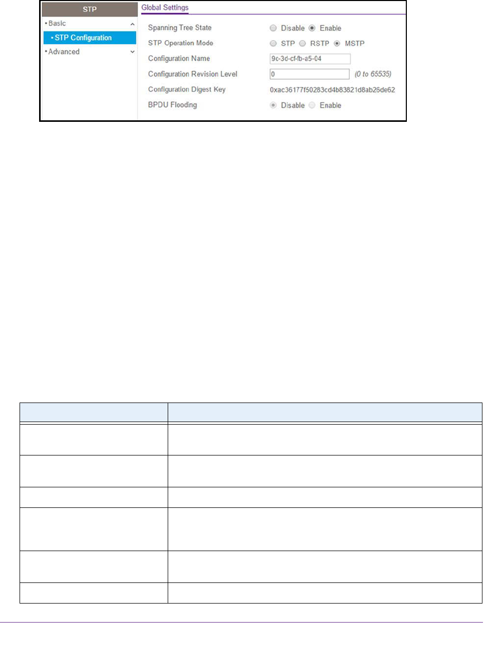 • Spanning Tree State. Enable or disable the spanning tree operation on the switch.