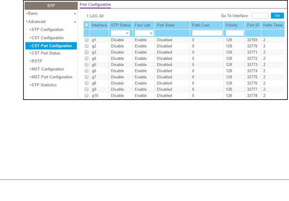 5. Select Switching > STP > Advanced > CST Port Configuration.