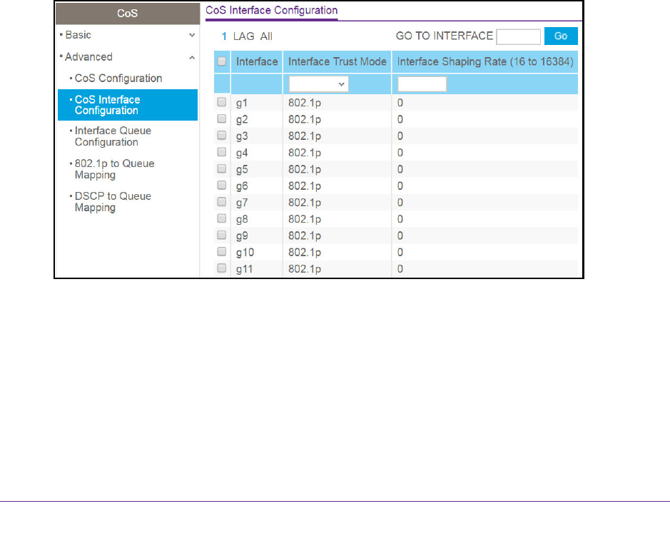 5. Select QoS > CoS > Advanced > CoS Interface Configuration.