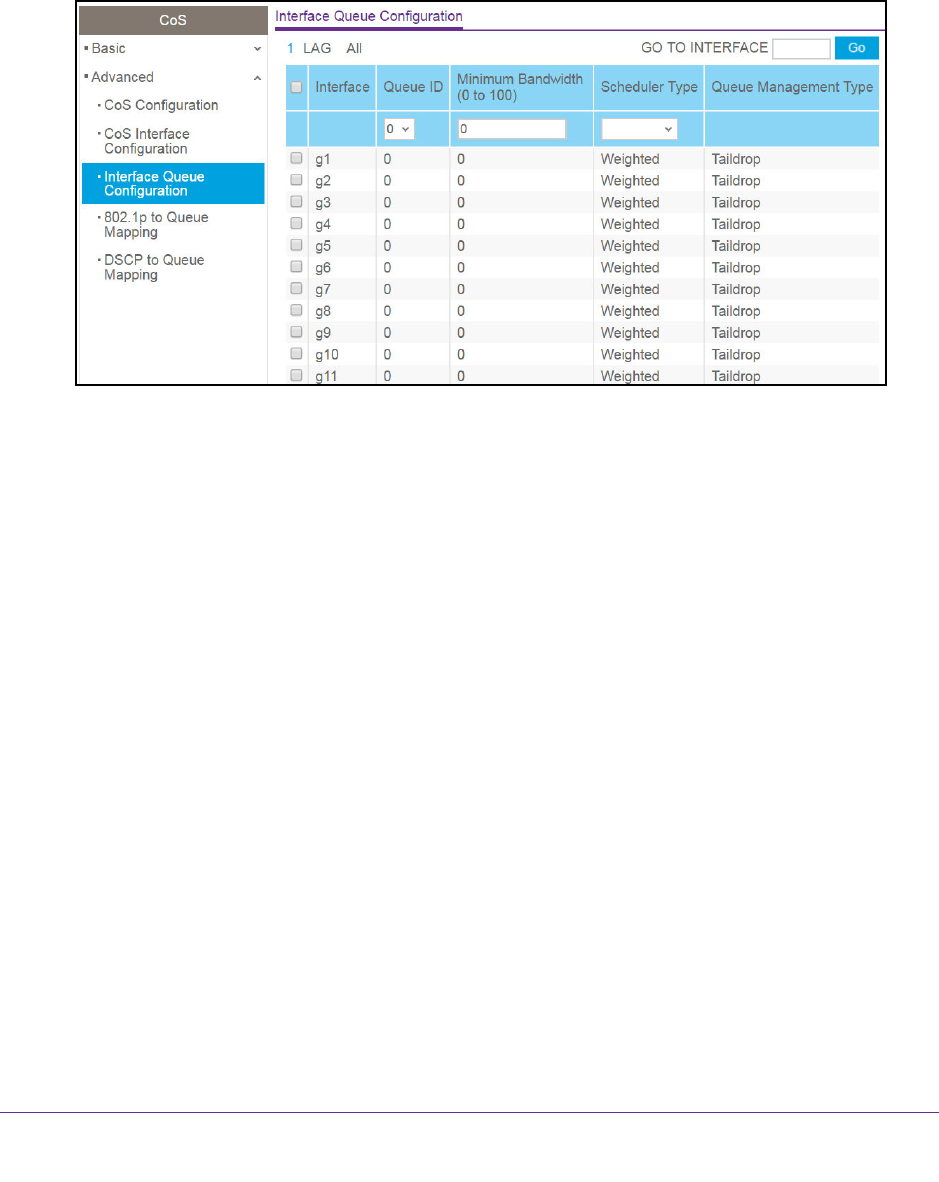 5. Select QoS > CoS > Advanced > Interface Queue Configuration.