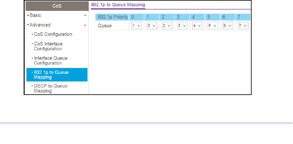 5. Select QoS > CoS > Advanced > 802.1p to Queue Mapping.
