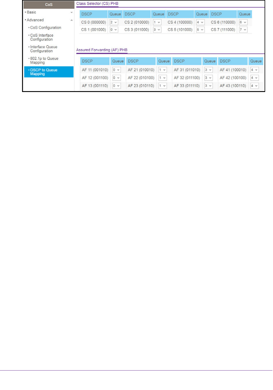 6. For each DSCP value, select from the corresponding Queue menu which internal traffic