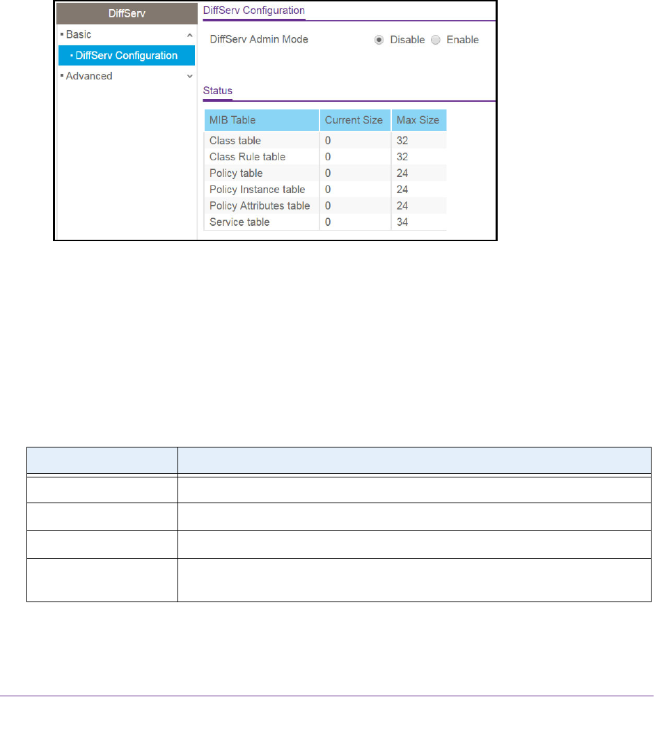 • Disable. The DiffServ configuration is retained and can be changed but is not active.