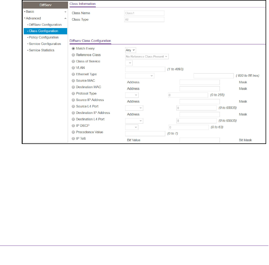 packets to belong to the class. The only selection from the Match Every menu is Any.