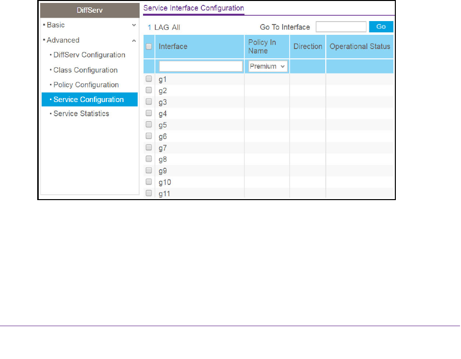 5. Select QoS > DiffServ > Advanced > Service Configuration.
