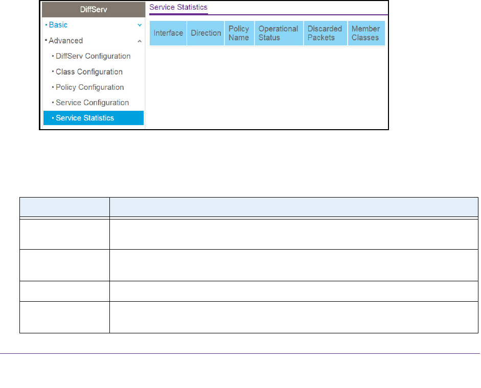 Table 41. DiffServ Service Statistics information