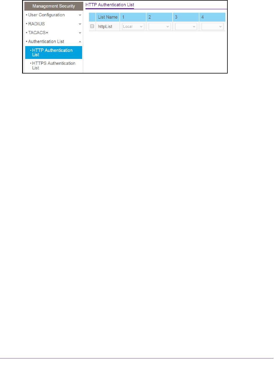5. Select Security > Management Security > Authentication List > HTTP Authentication