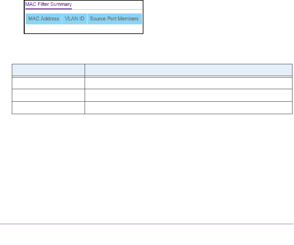 VLAN ID The VLAN ID used with the MAC address to fully identify packets you want filtered.