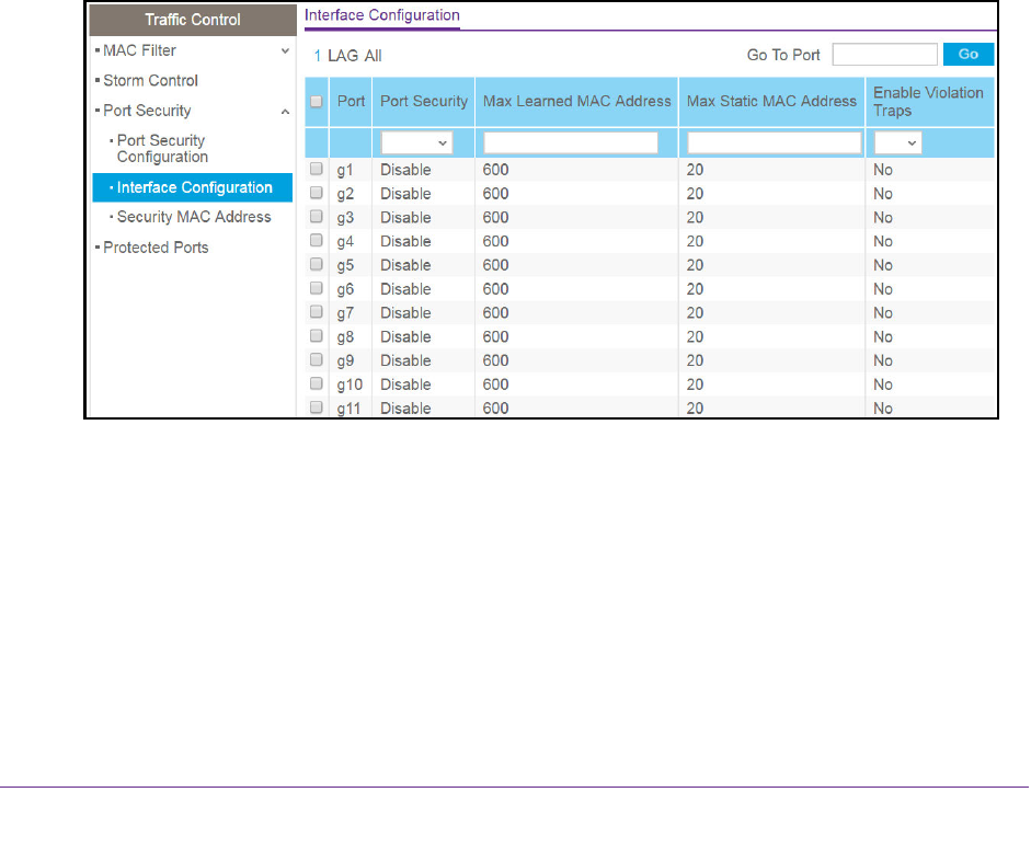 5. Select Security > Traffic Control > Port Security > Interface Configuration.