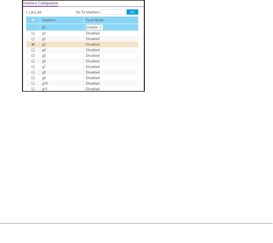 2. In the Go To Interface field, type the LAG number, for example l3.