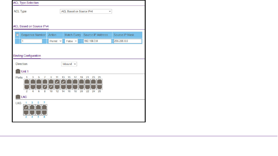 11, and 13 and on LAG 1. Only the Inbound option is valid. Packets that include a source