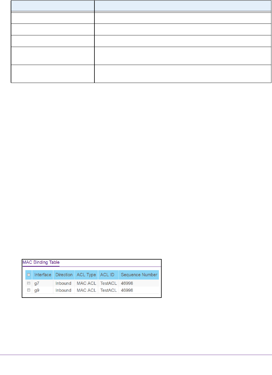 You can view or delete the MAC ACL bindings in the MAC Binding Table.