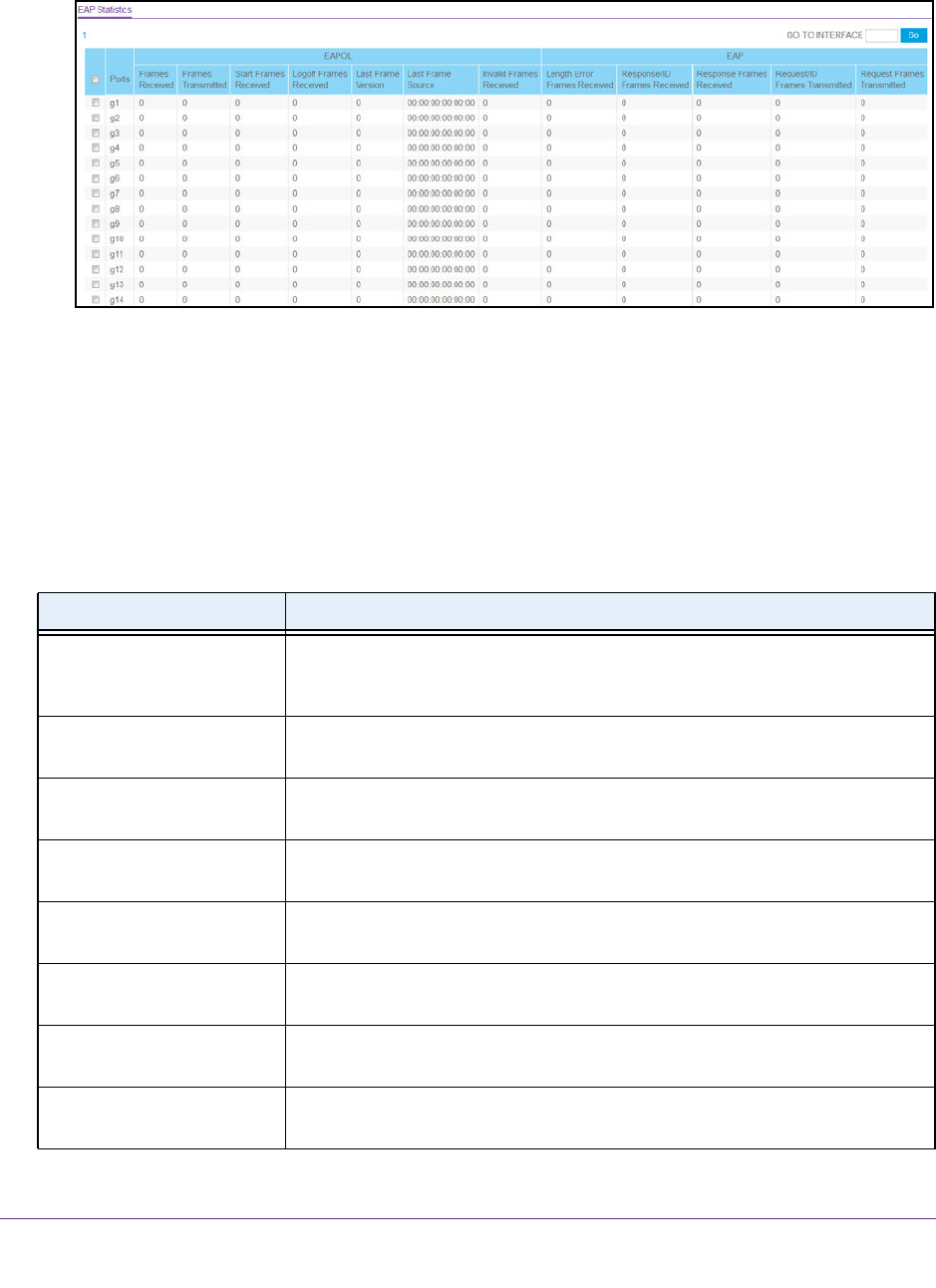 The following table describes the EAP statistics on the page.