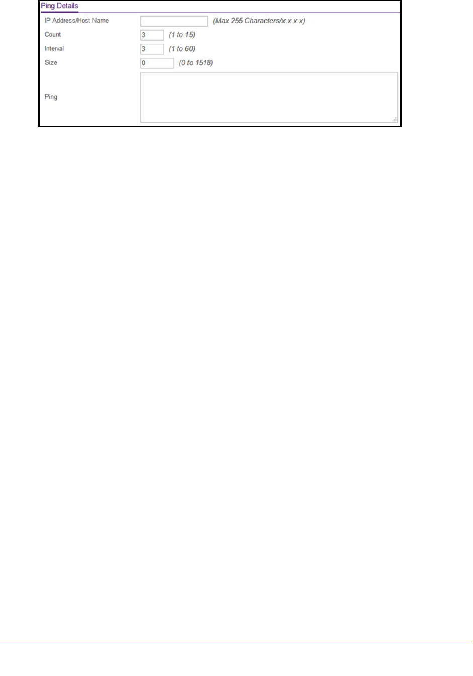 9. In the Size field, enter the size of the ping packet. The default is 0 bytes. The range is 0 to