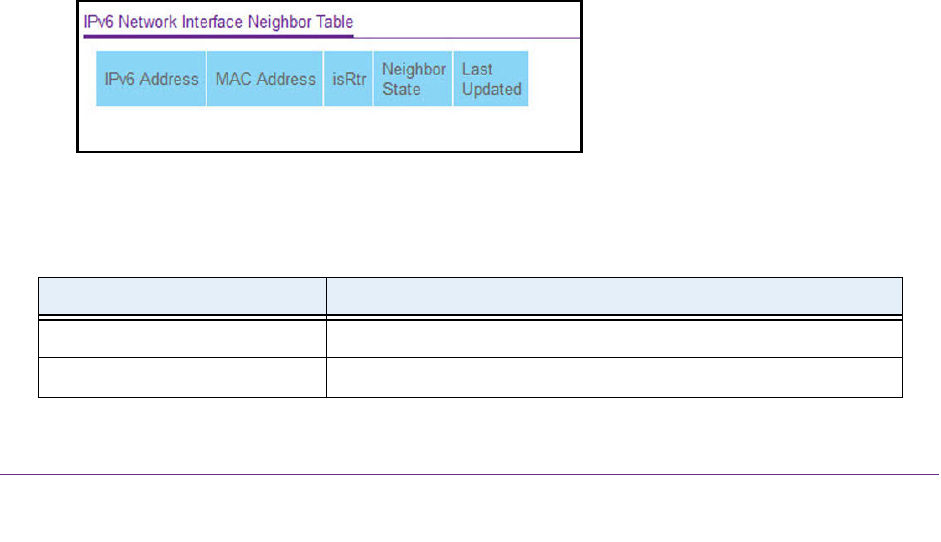 The following table describes the information the IPv6 Network Neighbor page displays about