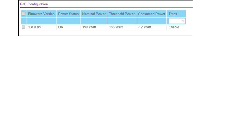 You can configure the PoE trap settings and view PoE information such as nominal power,