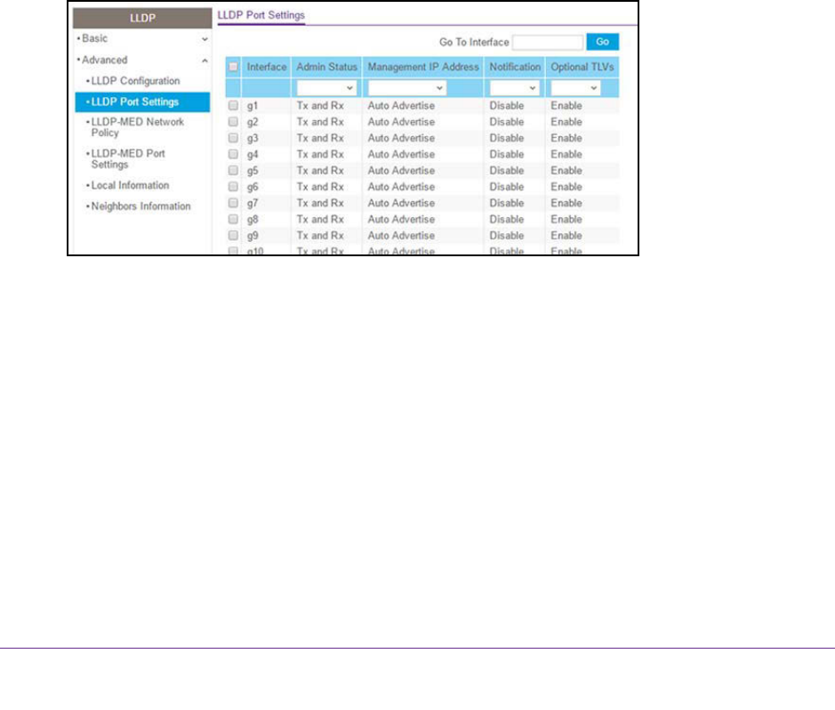 5. Select System > LLDP > Advanced > LLDP Port Settings.