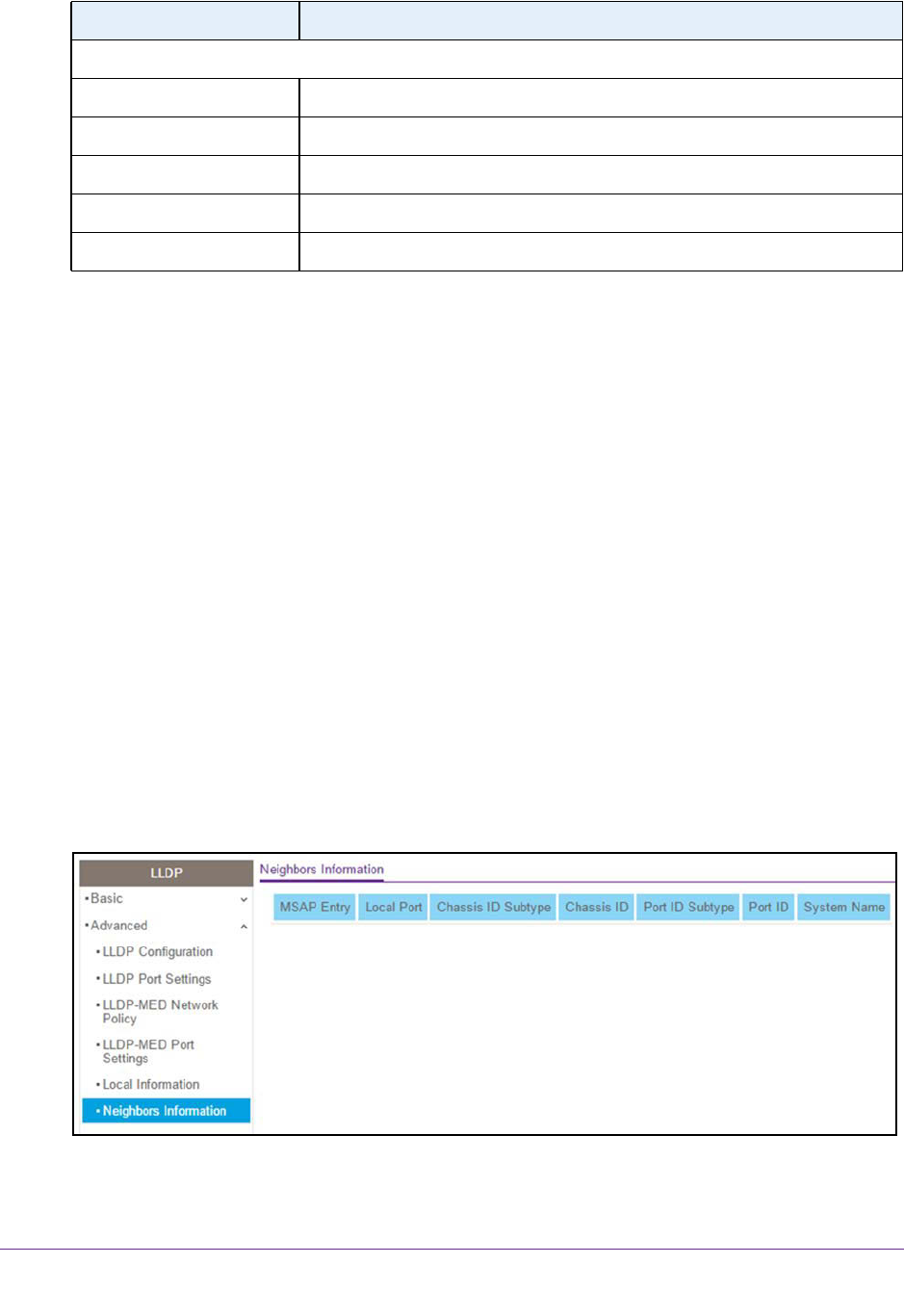 5. Select System > LLDP > Advanced > Neighbor Information.