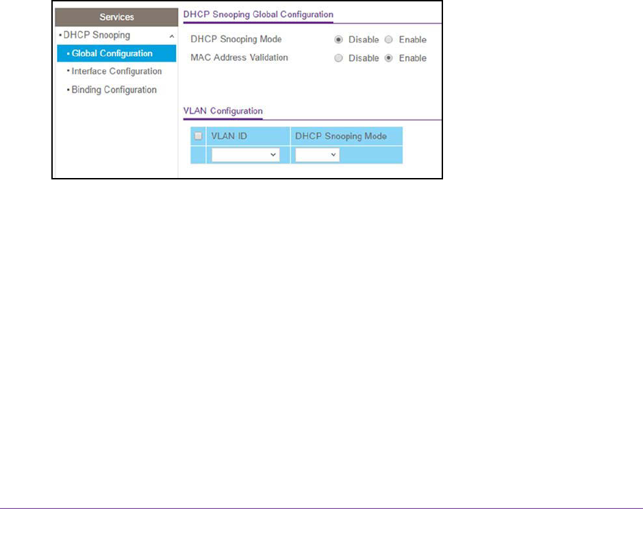 5. Select System > Services > DHCP Snooping > Global Configuration.