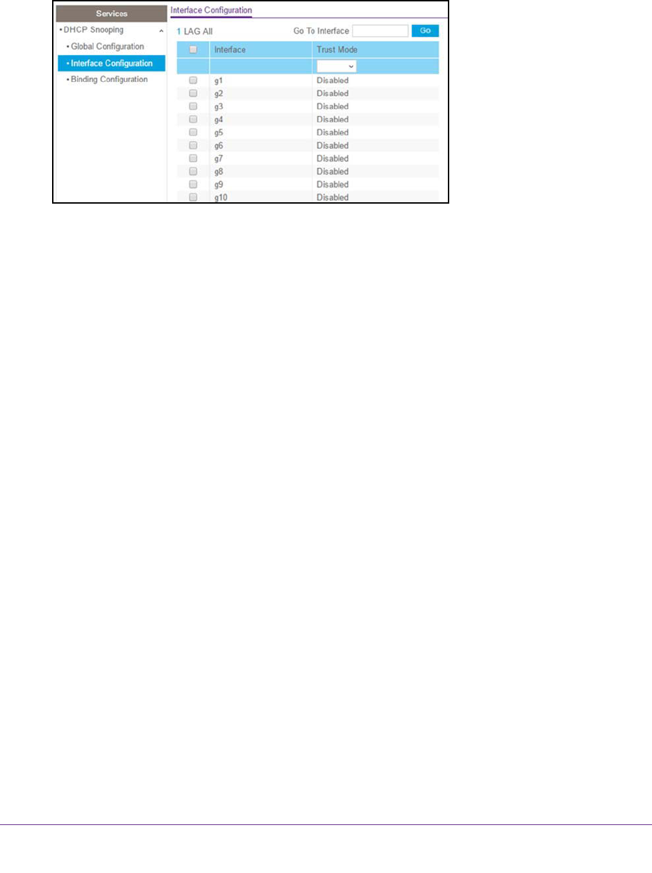 5. Select System > Services > DHCP Snooping > Interface Configuration.