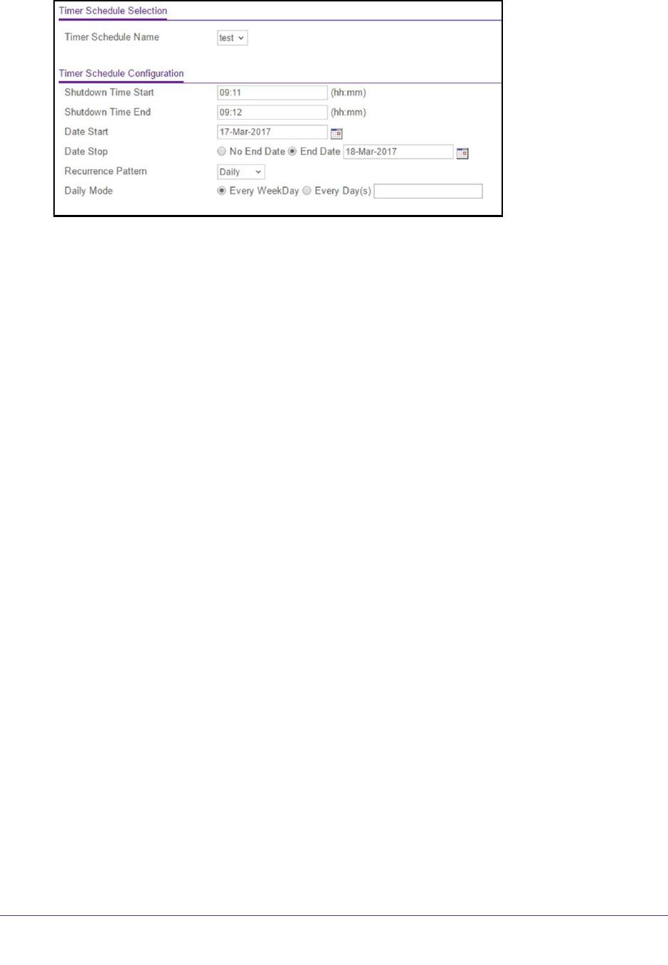 7. In the Shutdown Time Start field, enter the time of day in the HH:MM format to specify