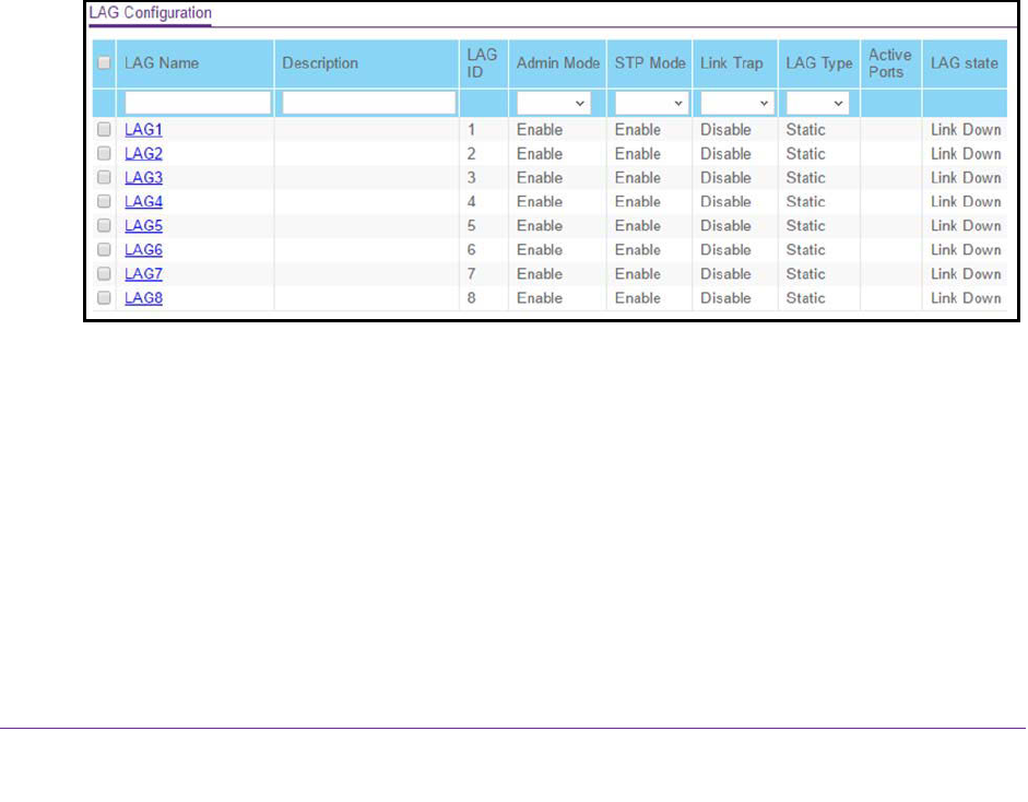 5. Select Switching > LAG > Basic > LAG Configuration.
