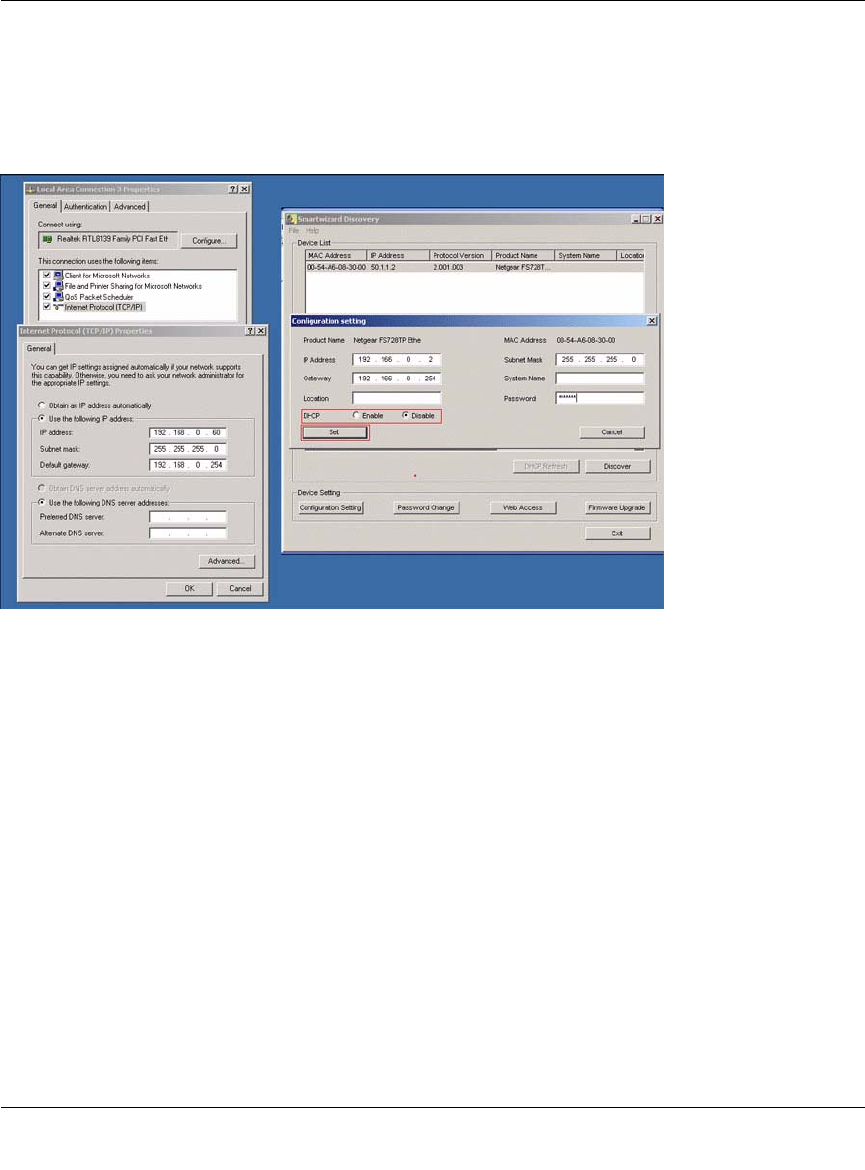 The settings of your NIC on the host that accesses the GS748T Smart Switch, under MS Windows