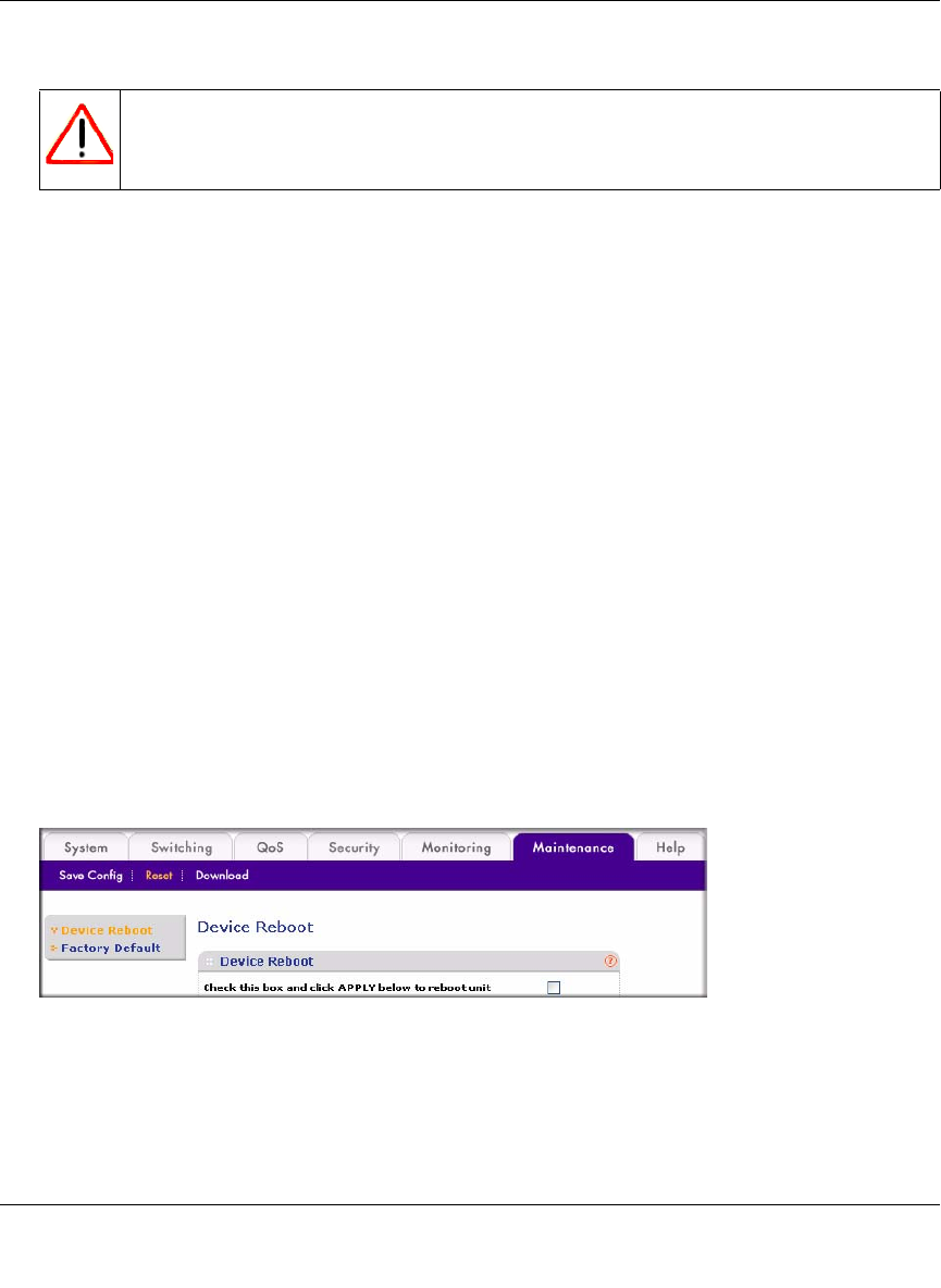 Performing a Device Reboot restarts the system. Your configuration settings remain intact. You