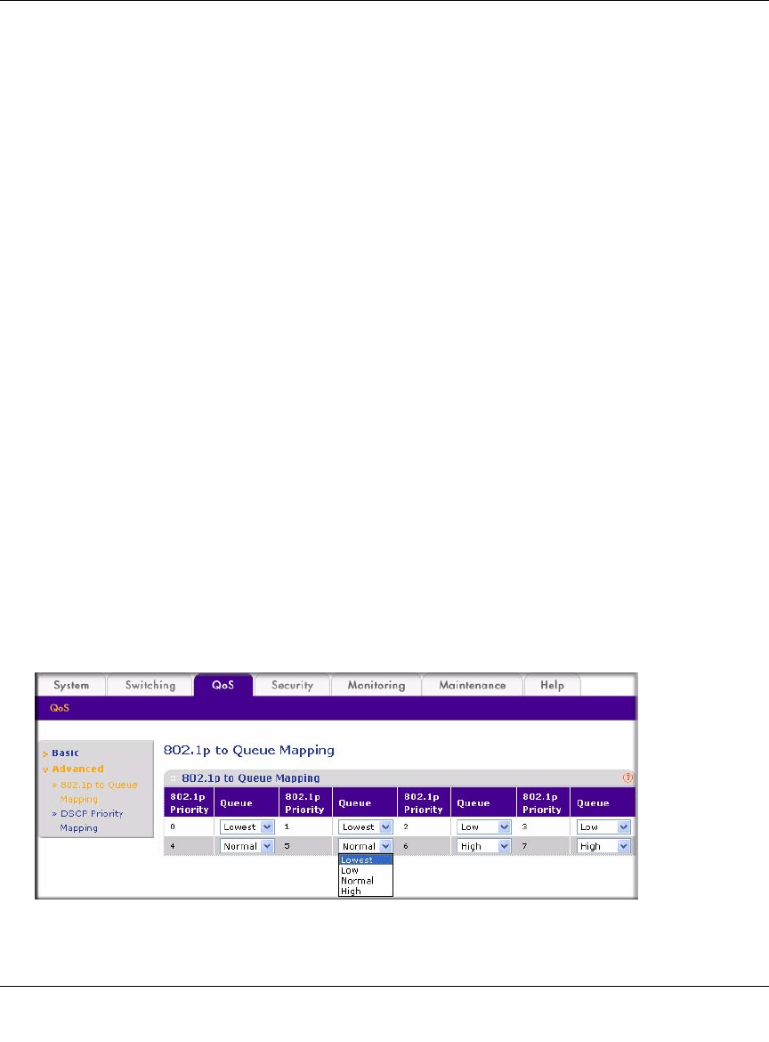 1. Select QoS > Advanced > 802.1p Queue Mapping. The 802.1p to Queue Mapping screen will