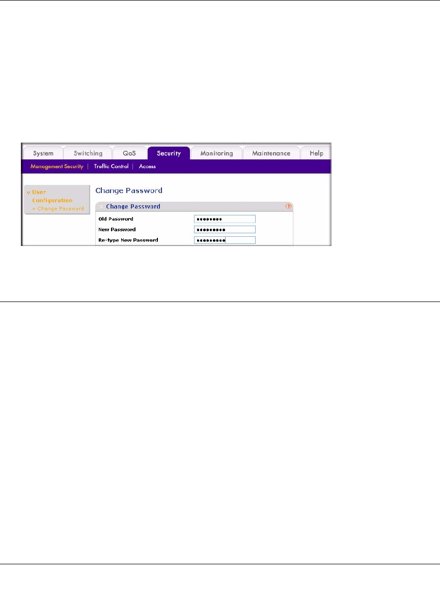 1. Select Security > Management Security. The User Configuration > Change Password screen