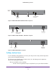 NETGEAR Managed Switch Install the Switch on a Wall (M4100-D10-PoE Only) If you install the switch on a wall in the vertical position, be sure to orient the switch as shown in the following figure. The switch should be mounted so that the ports face up or down. Do not mount the switch with the ports to the side. The exhaust air should come out the side of the switch case. Note: The switch should have a minimum of 5 inches (130 millimeters) of clearance on all sides. 1.