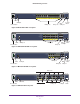 NETGEAR Managed Switch LEDs USB port Reset button POE ports RJ-45 ports SFP ports Figure 5. M4100-26G-POE front panel LEDs USB port Reset button POE ports RJ45 ports SFP ports Figure 6. M4100-50G-POE+ front panel LEDs USB port Reset button RJ45 ports POE ports SFP ports Figure 7. M4100-D10-POE Front Panel LEDs USB port Reset button RJ45 ports Figure 8.