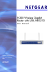 N300 Wireless Gigabit Router with USB JNR3210 Desktop NETGEAR genie Desktop NETGEAR genie is the easy dashboard for managing, monitoring, and repairing your home network. • Automatically repair common wireless network problems. • Have easy access to router features like Live Parental Controls, guest access, broadband usage meter, speed test, and more. • Use the Network map to see all devices on your home network. To download the free NETGEAR genie, go to this page at the NETGEAR website: www.
