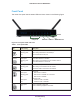 N300 Wireless Router JWNR2000v3 Front Panel The router front panel has the status LEDs and icons shown in the following figure. Power LAN ports Wireless Internet WPS/FastLane Figure 2. Front panel LEDs and icons Table 1. Front panel LEDs Icon LED Activity Description LAN ports 1–4 Solid green Blinking green Off The local port is connected to a 10/100 Mbps device. Data is being transmitted at 10/100 Mbps. No link is detected on this port.