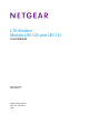 LTE Modem LB1120 and LB1121 Support Thank you for purchasing this NETGEAR product. You can visit www.netgear.com/support to register your product, get help, access the latest downloads and user manuals, and join our community. We recommend that you use only official NETGEAR support resources. Conformity For the current EU Declaration of Conformity, visit http://kb.netgear.com/app/answers/detail/a_id/11621. Compliance For regulatory compliance information, visit http://www.netgear.com/about/regulatory.